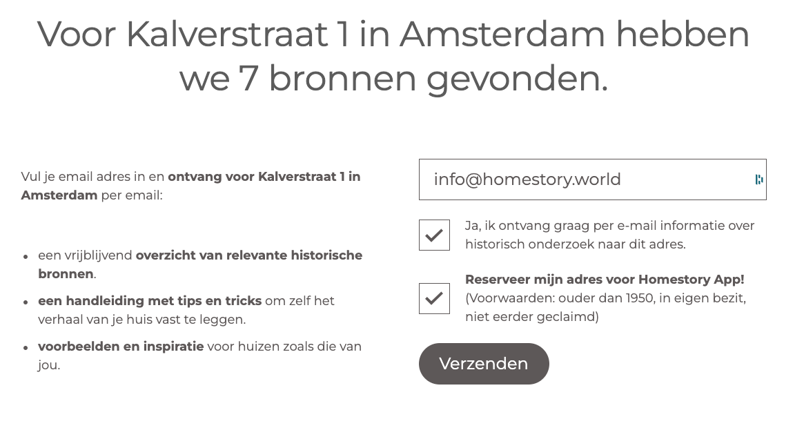 Ga naar onze site en zoek je adres op. Vul je e-mailadres in en vink aan: “Reserveer mijn adres voor Homestory App-lancering.”